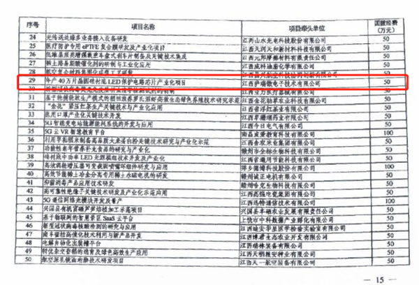 江西一LED芯片項目被列為科技部重點專項